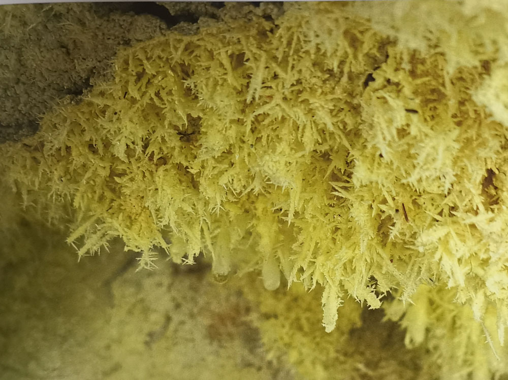 Piccoli, dai colori brillanti ed estremamente delicati. Si formano in poche ore ma può bastare una forte pioggia per spazzarli via. I minerali fumarolici sono delle formazioni tipiche dei sistemi vulcanici attivi, la cui formazione è regolata dalle alte temperature delle fumarole e dall’interazione dei gas fumarolici con le rocce circostanti.