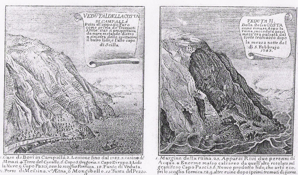 Nel febbraio del 1783 la Calabria e la Sicilia furono colpite da una delle più lunghe crisi sismiche del nostro territorio. Tutto ebbe inizio il 5 febbraio, con un forte terremoto in Calabria, a cui ne seguirono molti altri nei tre anni successivi. Alcuni eventi sismici provocarono degli tsunami che causarono vittime e danni considerevoli.